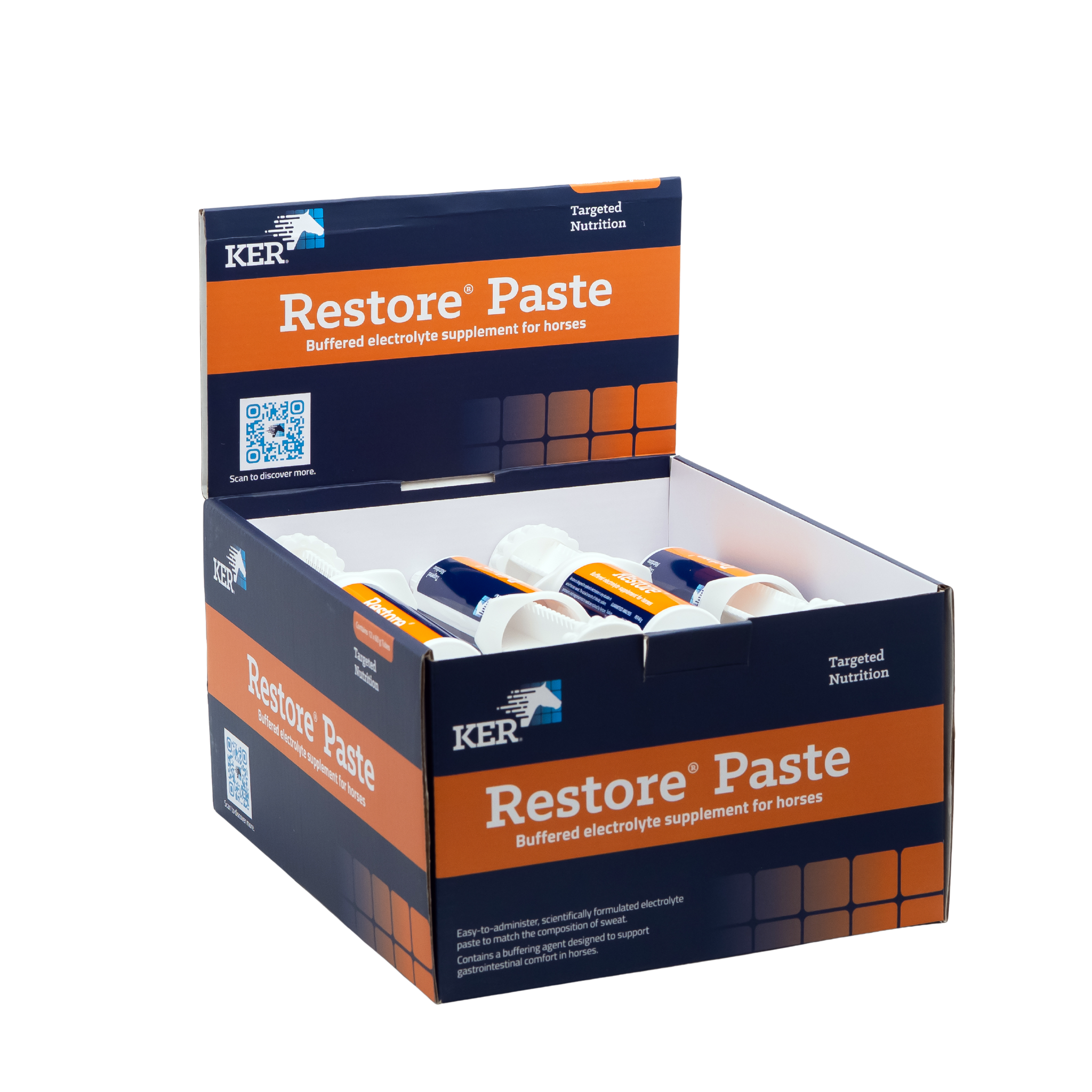 A carefully formulated electrolyte paste to match the composition of sweat. Restore Paste is an easy-to-administer product that includes a buffering agent designed to support gastrointestinal comfort in horses.